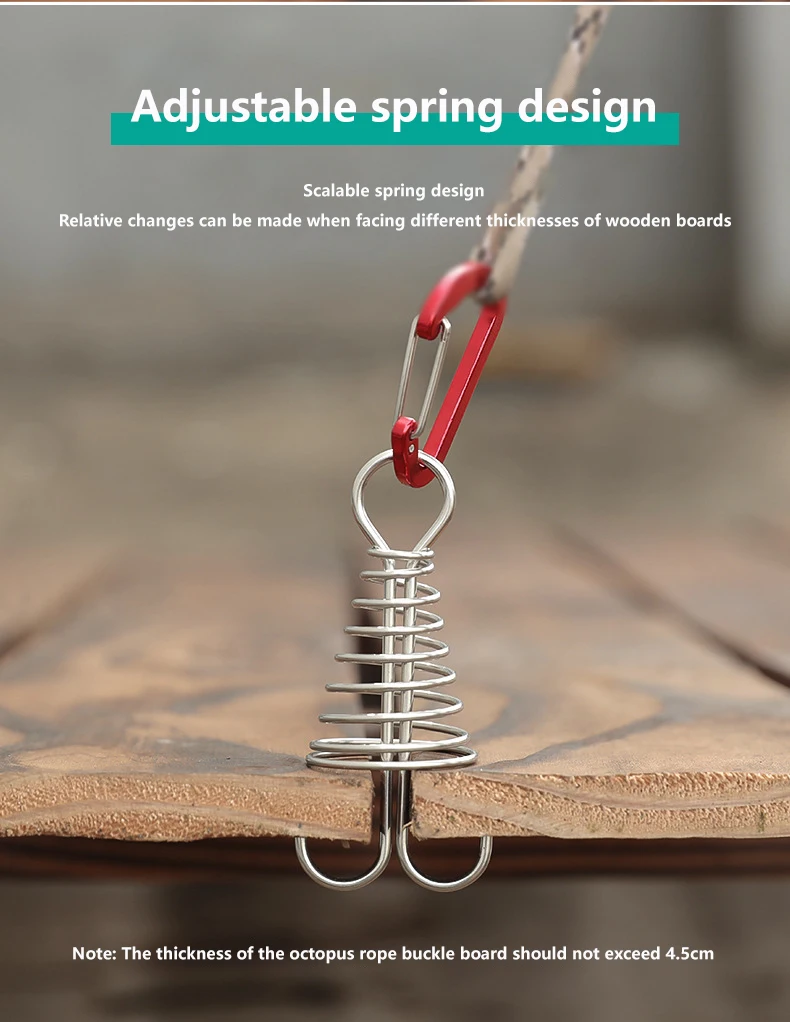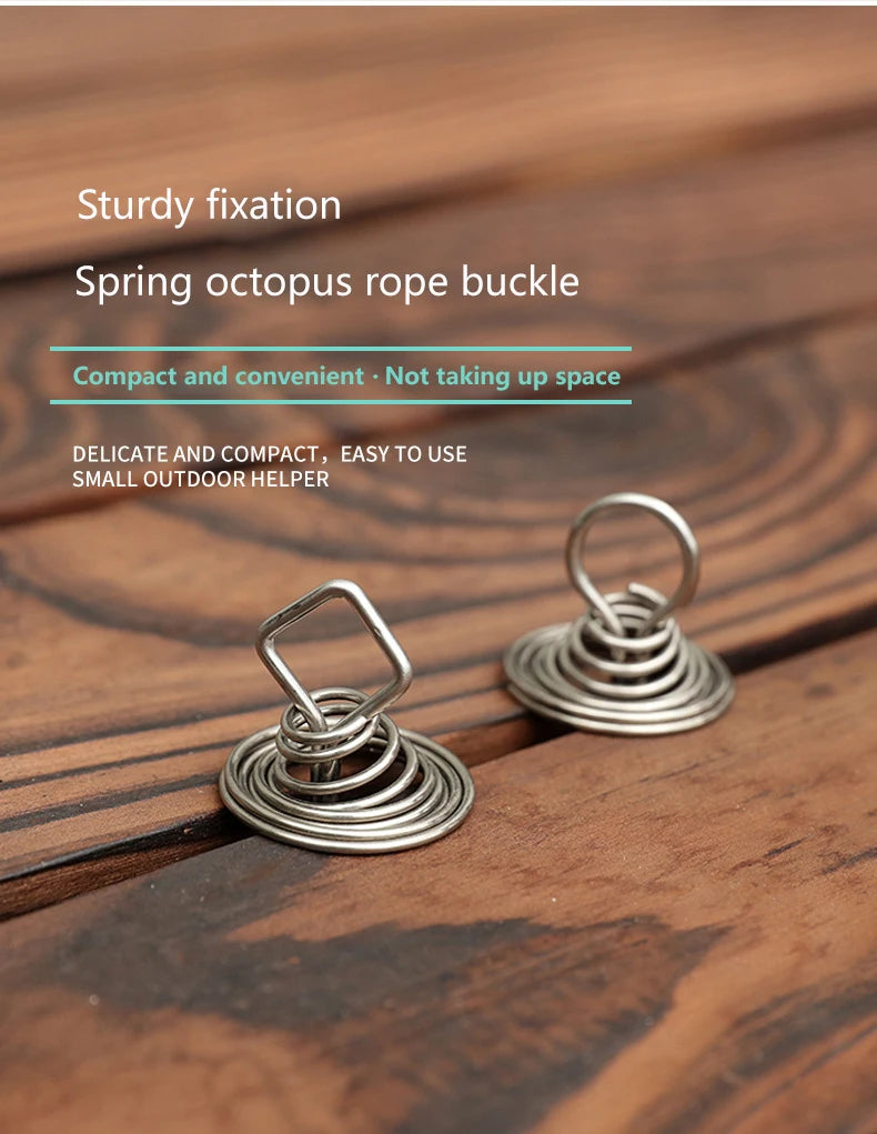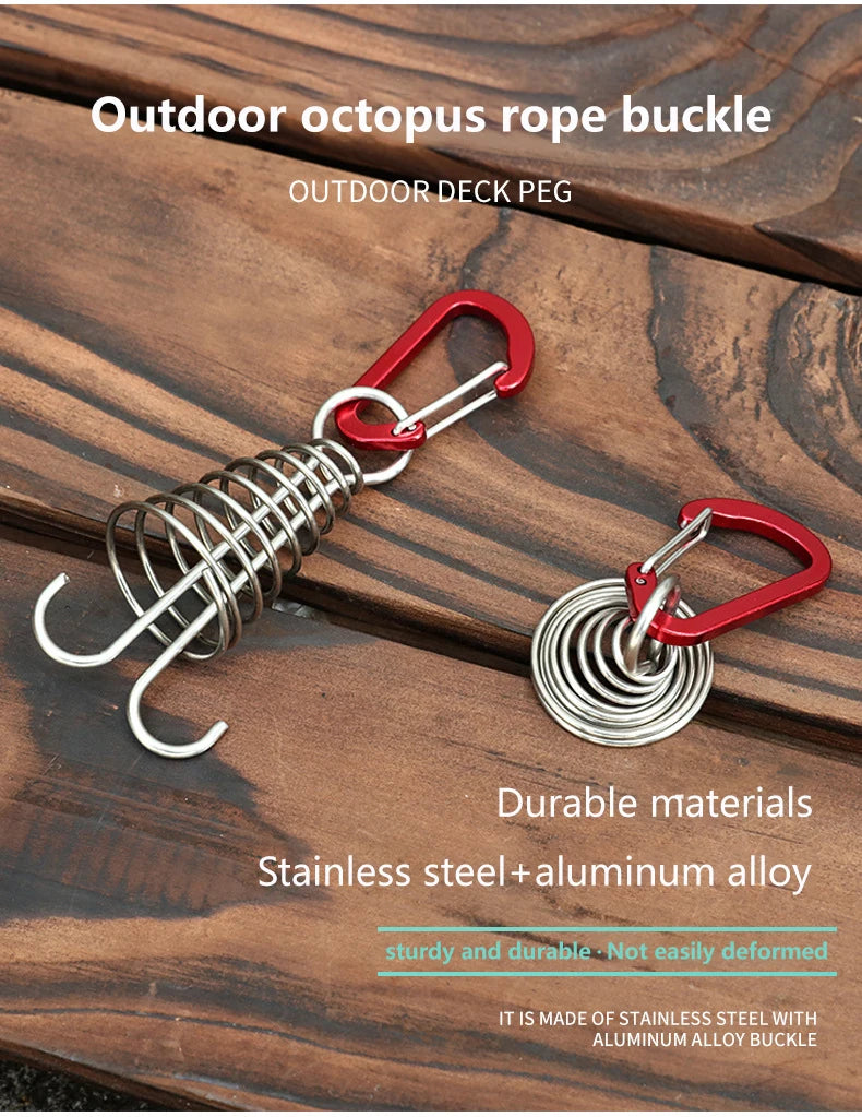 Outdoor Camping Octopus Rope Buckle Camping Deck Nail Stainless Steel Fixed Tent Rope Buckle Wooden Hook Spring Wind Rope